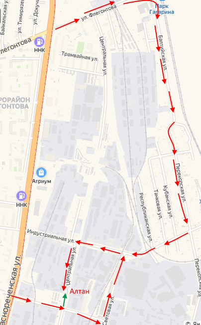 Уважаемые клиенты! В г. Хабаровк проезд к терминалу ТК Алтан по ул. Индустриальная перекрыт до 20 июля 2019 г. Объездные дороги через переулок Индустриальный и ул. Флегонтова. Схема проезда: